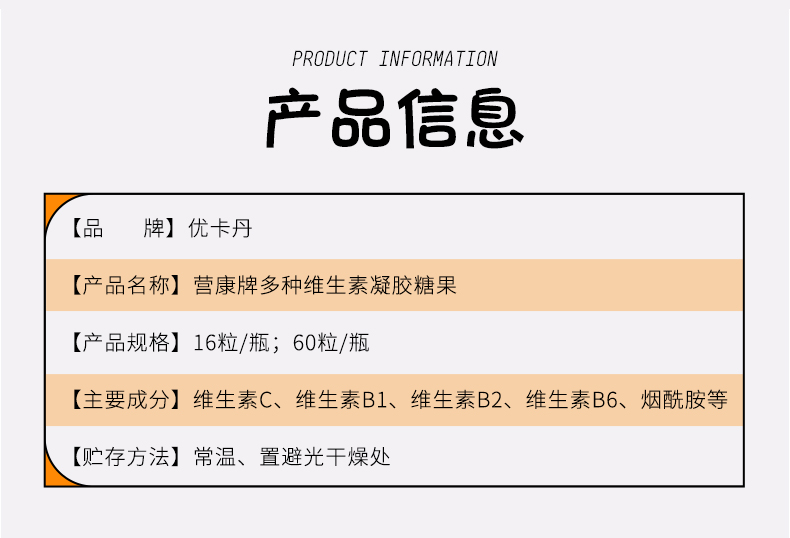 產(chǎn)品名稱:優(yōu)卡丹營(yíng)康牌多種維生素凝膠糖果